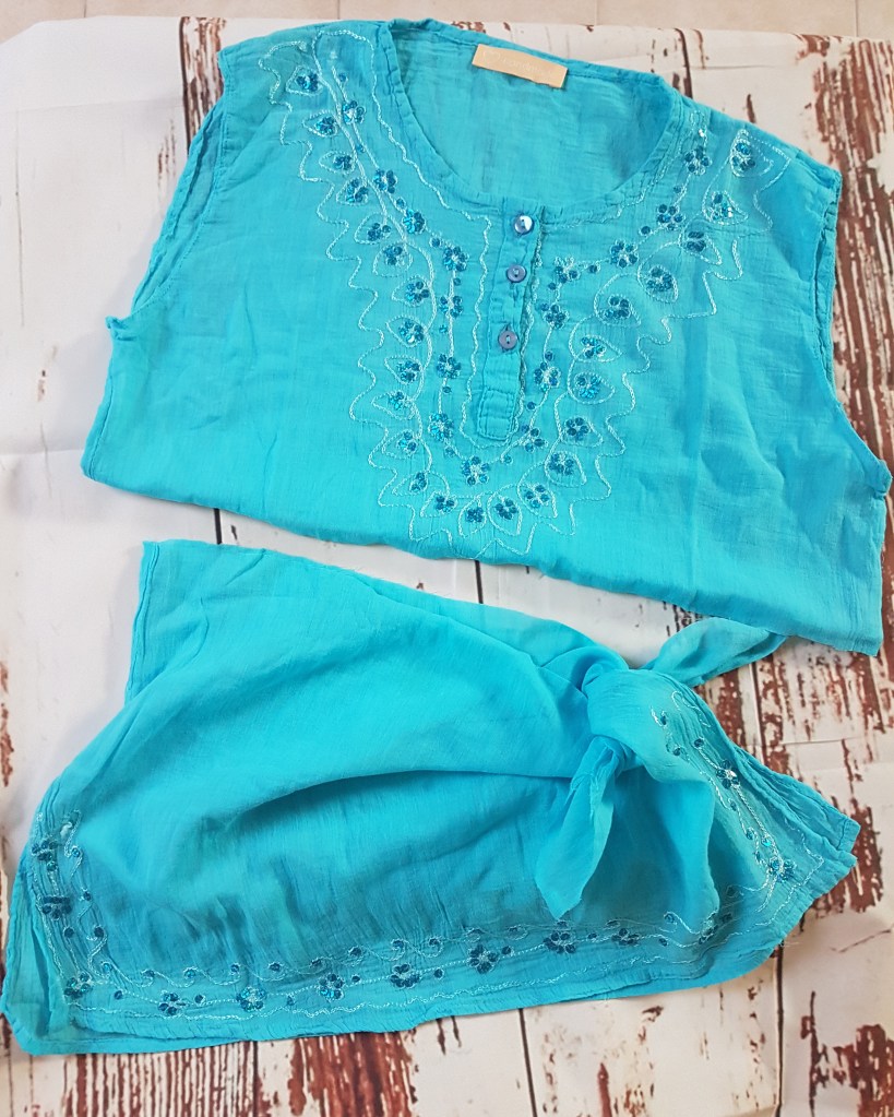 Fresca e leggera con 5 bottoni in fantasia nella parte anteriore💙